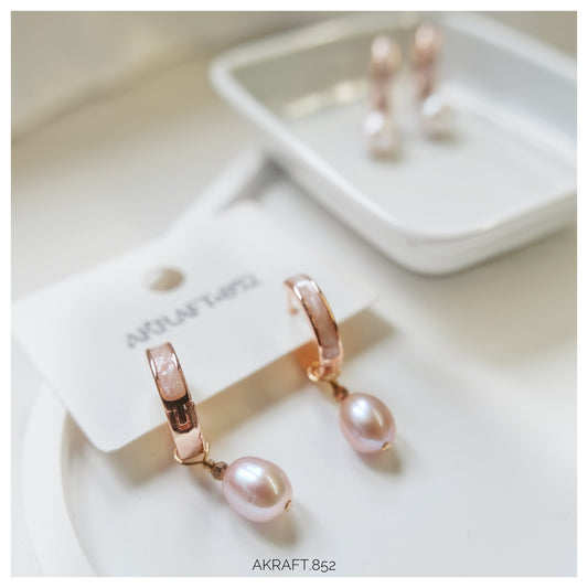 Pink Droplet Pearl Hoop Earrings 【Two in One】