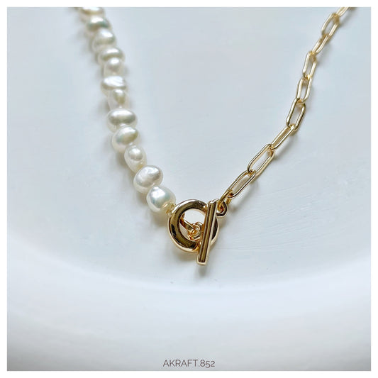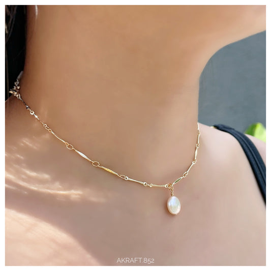 Round Baroque Freshwater Pearl with Long Flat Chain Necklace