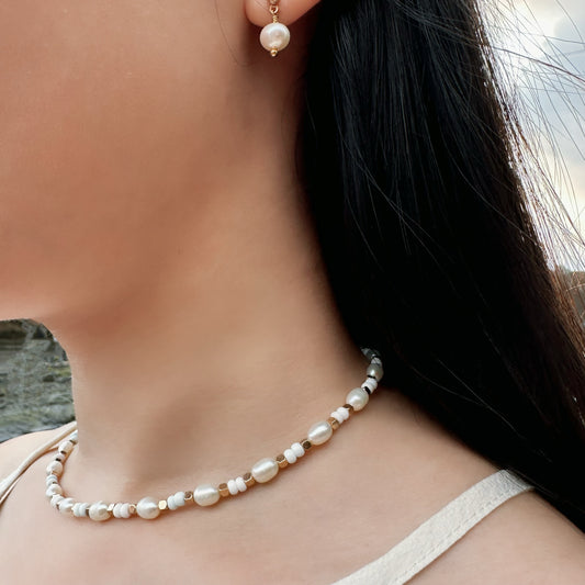 SIMPLE - Blue Veined Agate Freshwater Pearl Bracelet